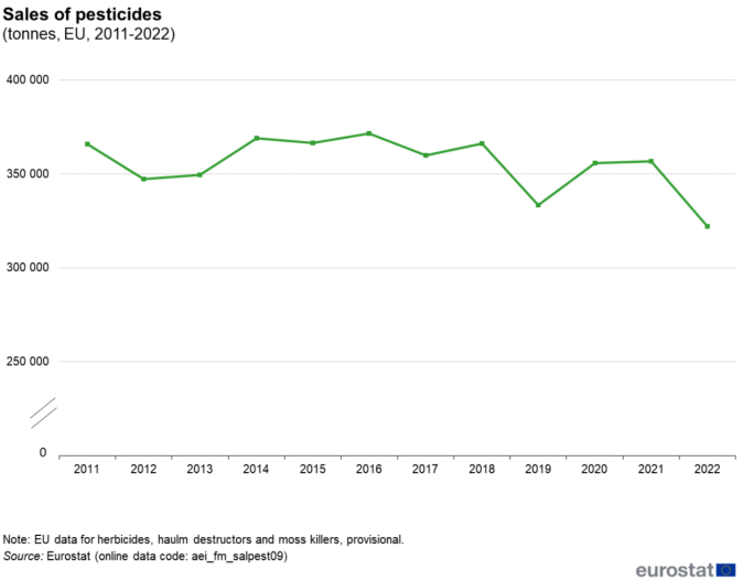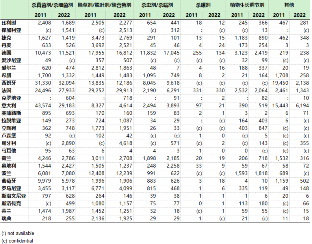 欧盟统计局(Eurostat)发布了2022年欧盟农药销量数据统计报告,并分别从欧盟整体和各成员国层面与2011年的情况进行了对比分析。