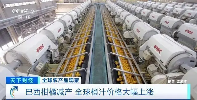 近来,全球气候变化使多国农产品生产受到影响,进而波及多国相关产品的加工、销售等。巴西是全球最大的橙汁出口国,每年生产大量的柑橘用于榨汁。但近年来,该国出现的高温干旱天气和病虫害,使柑橘产量出现了大幅下跌。