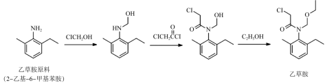 图3 乙草胺的常规合成路线(2-乙基-6-甲基苯胺作为原料)