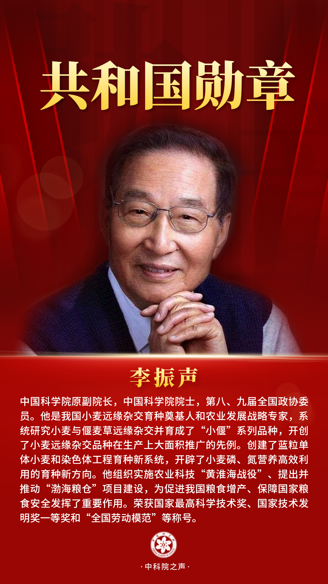 主席令:授予李振声等15人国家勋章和国家荣誉称号