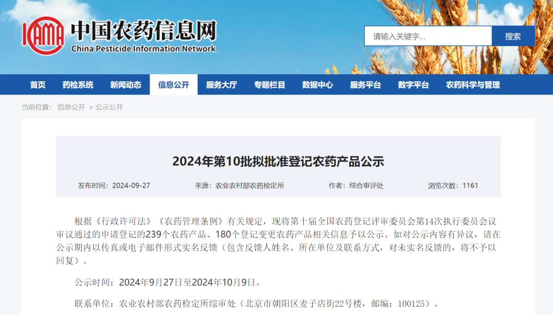 仲农要:2024年第10批公示的拟登记农药的产品性能等信息